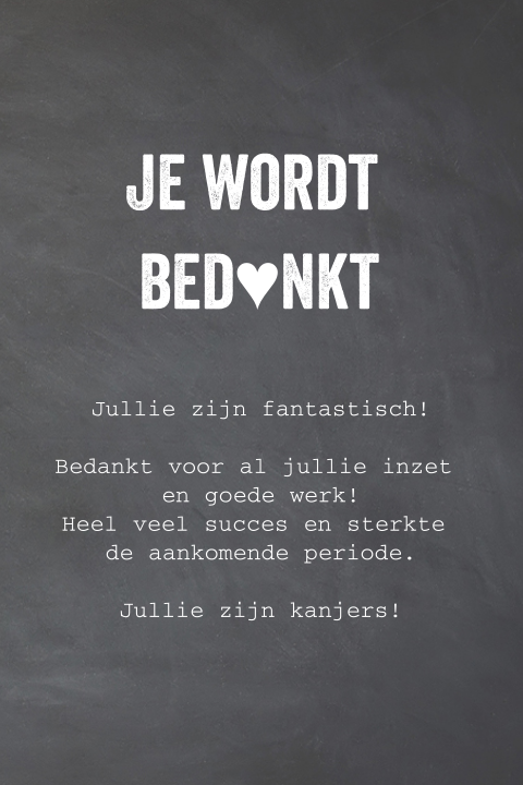 Bedankt voor je inzet kaartje personeel krijtbord